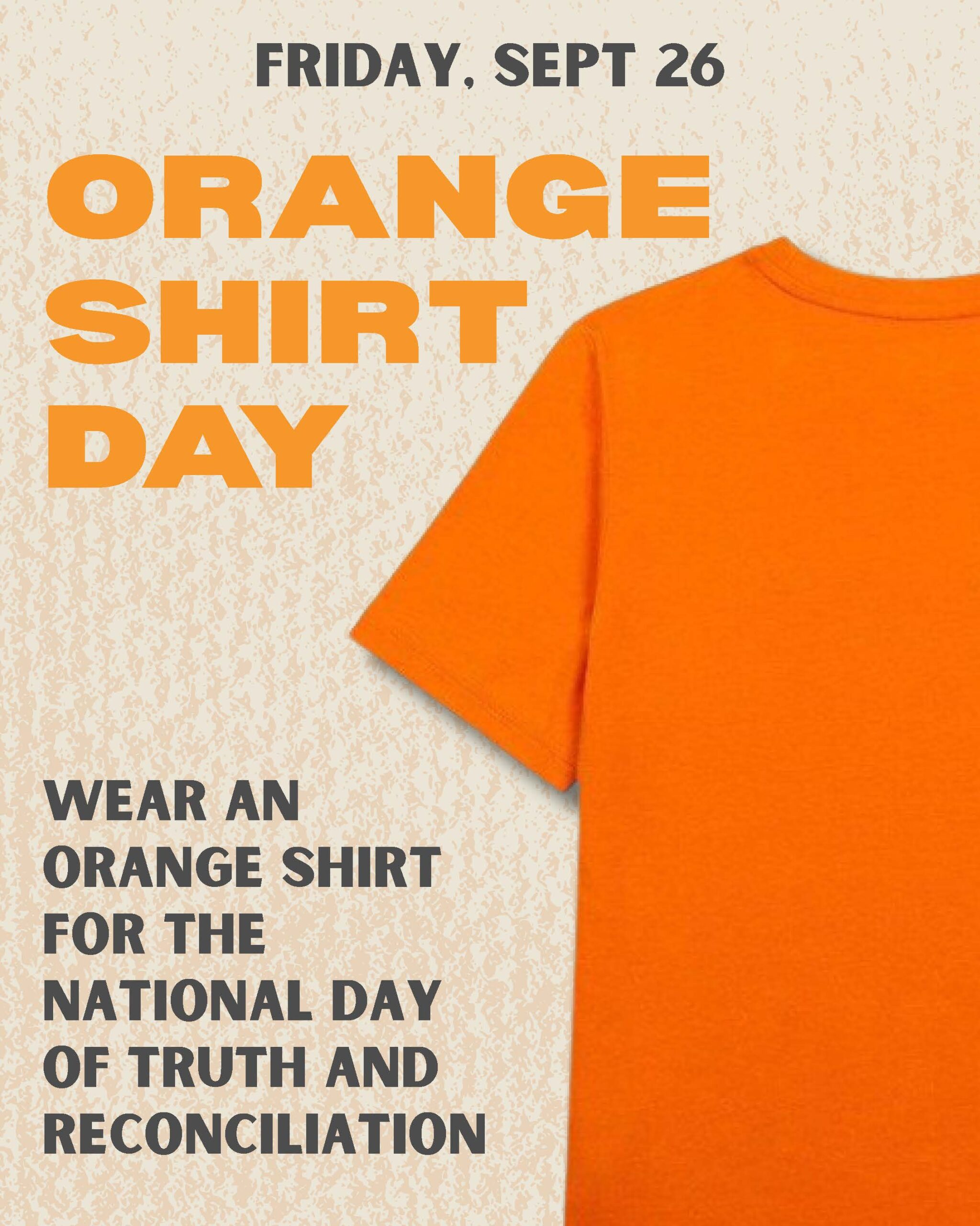 On Friday September 26th, we will be having a school wide assembly during period 2 and 3 to honour Orange Shirt Day and the National Day for Truth and Reconciliation.